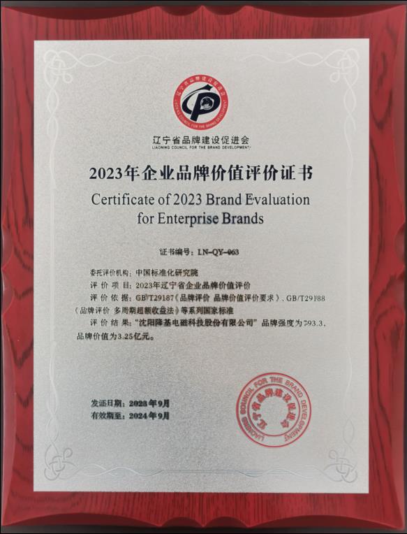 沈陽隆基電磁科技股份有限公司品牌價值3.25億元,品牌強度793.3,位于省機械制造類前列。
