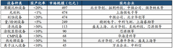 2022年國內大部分半導體設備環節國產化率仍不足20%
